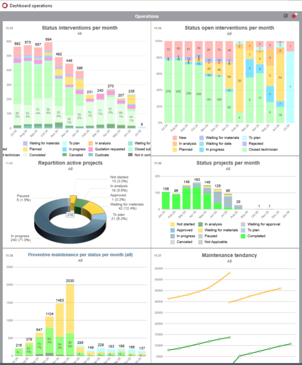 Collect and combine relevant data from different modules and present the results in real time in one or more dashboards.
